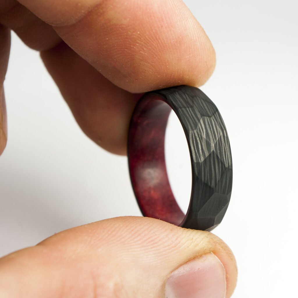 There are multiple carbon fiber composite uses, but what makes it particularly conducive to ring crafting are the qualities of durability, water resistance, and incredible lightness. “An item made from carbon fiber ring blanks is up to 80% lighter than a typical gold ring!”