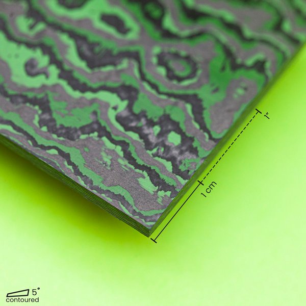 “Jungle Wear” is available in blocks up to 50mm thick and 480x480mm in size, and we can accommodate custom requests. Whether you’re looking for a functional material with a unique look or a visually striking product with practical applications, “Jungle Wear” has you covered. For custom requests please contact us.